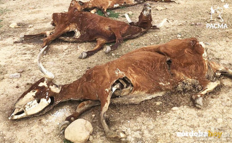 Igualmente, han subrayado que "los restos de los animales están próximos a un río y un arroyo, por lo que, además del maltrato y la crueldad que estas vacas sufrieron hasta su muerte, podrían existir riesgos ambientales y sanitarios".